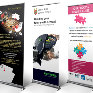 - Corporate & Event Branding – Banners, roll-ups, tents, and display stands.
